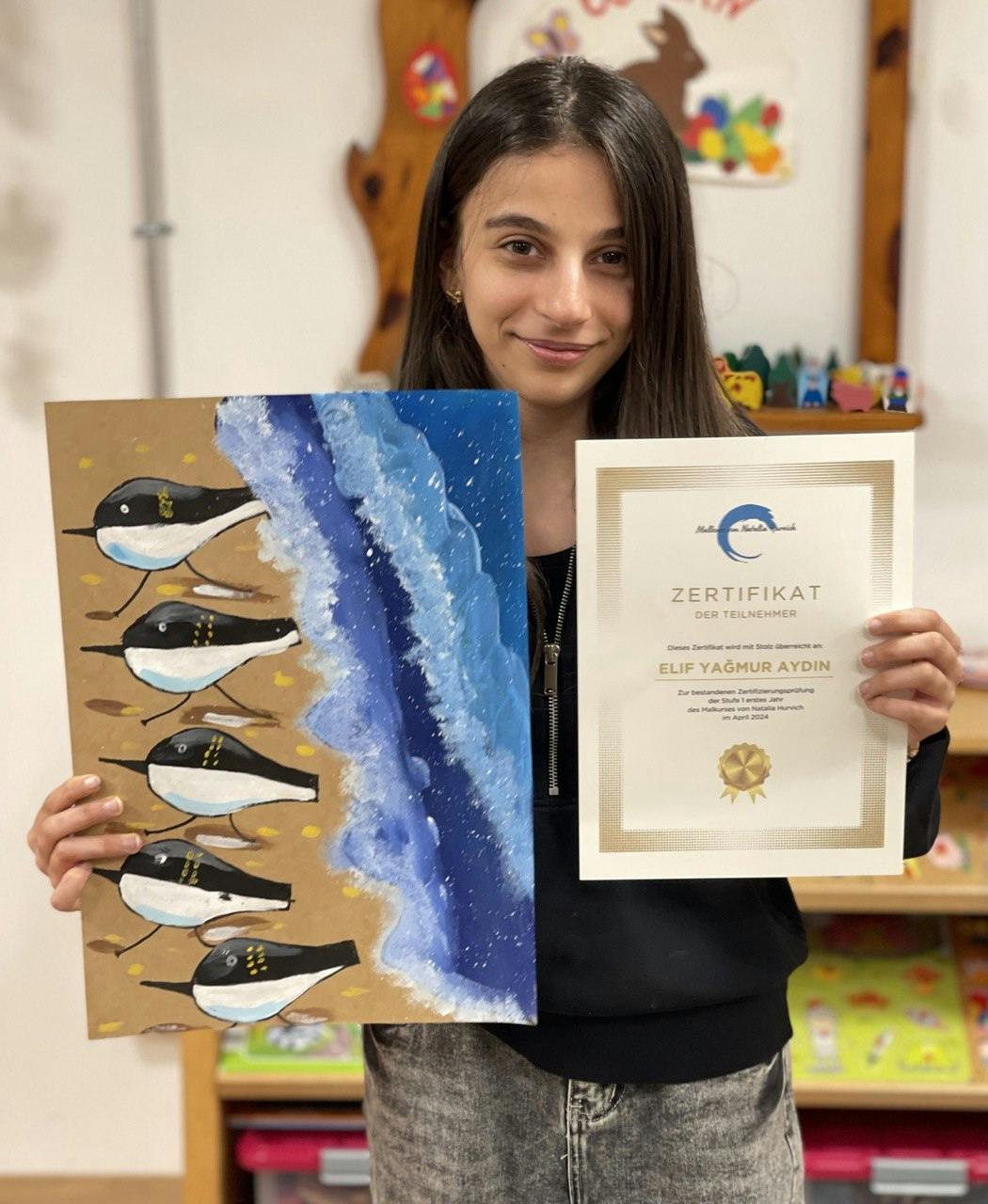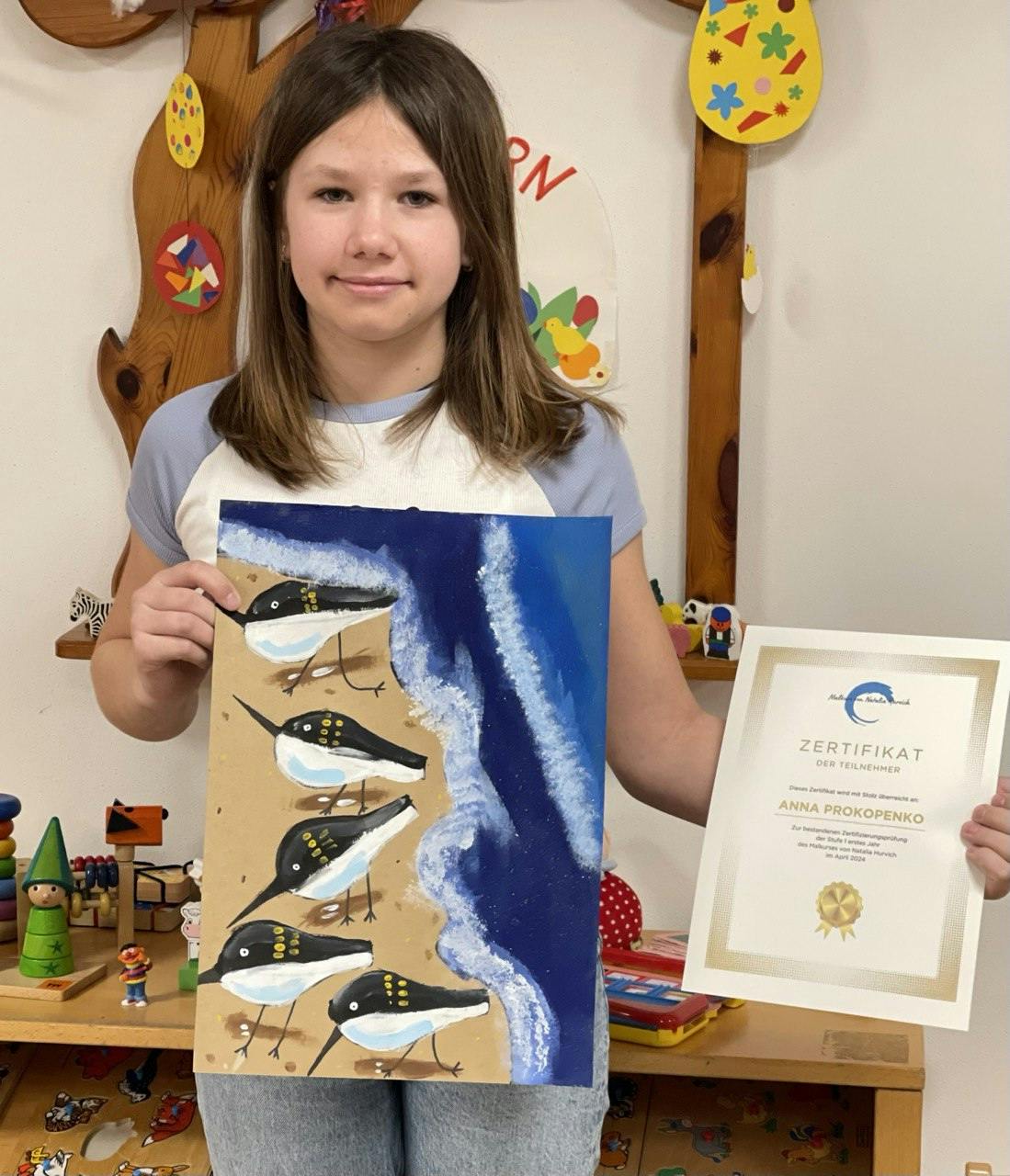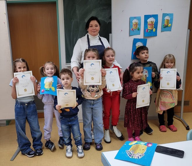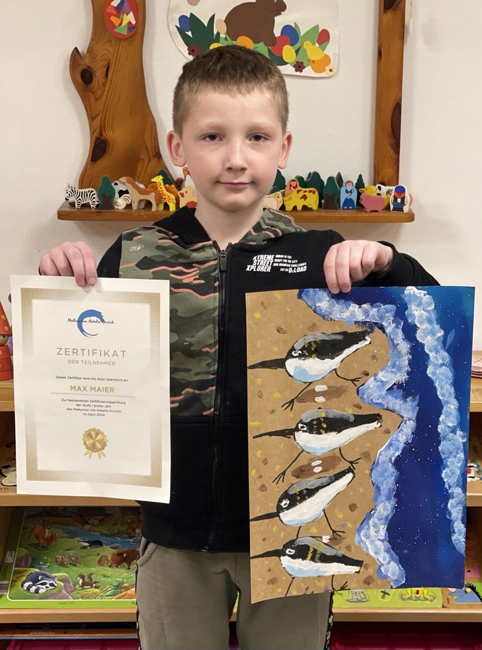 Im April haben die Kinder im Alter von 5-7 Jahren die Testarbeit bestanden und das erste Zertifikat des Malkurses von Natalia Hurvich erhalten.