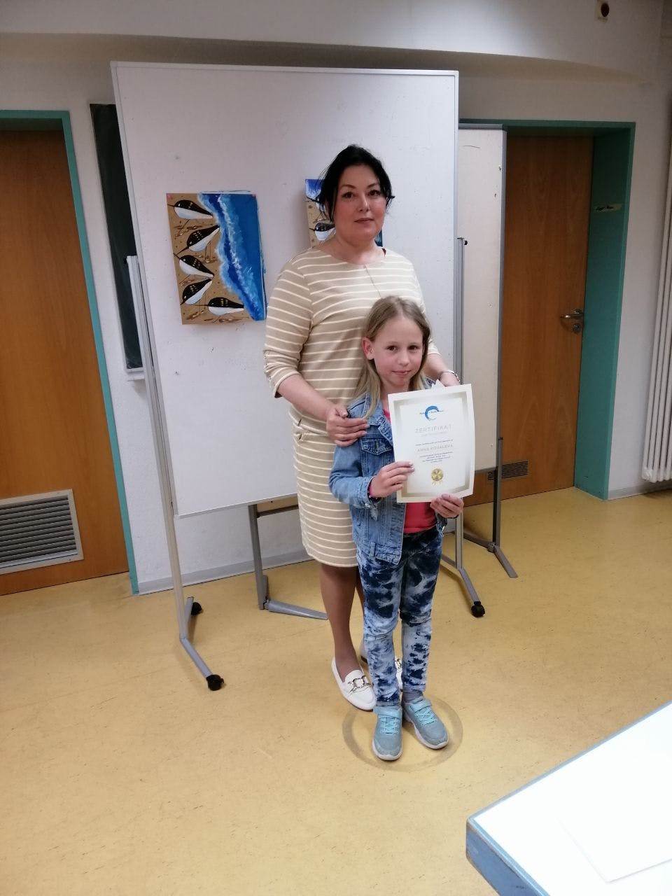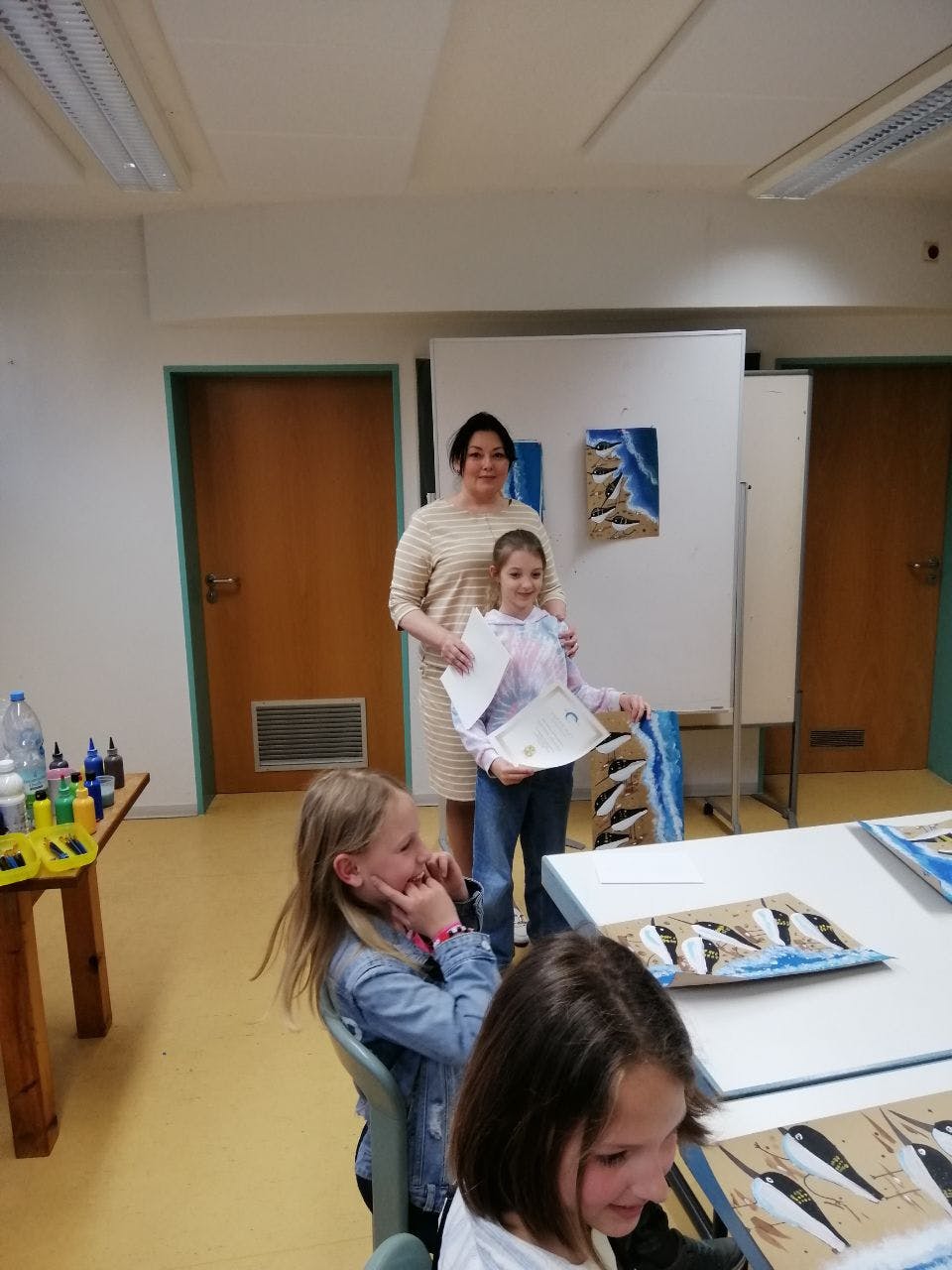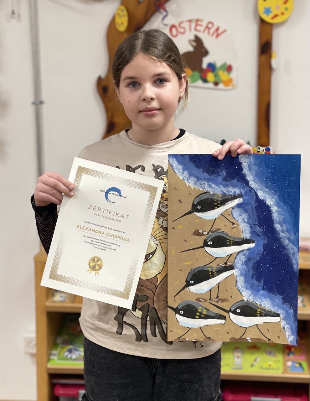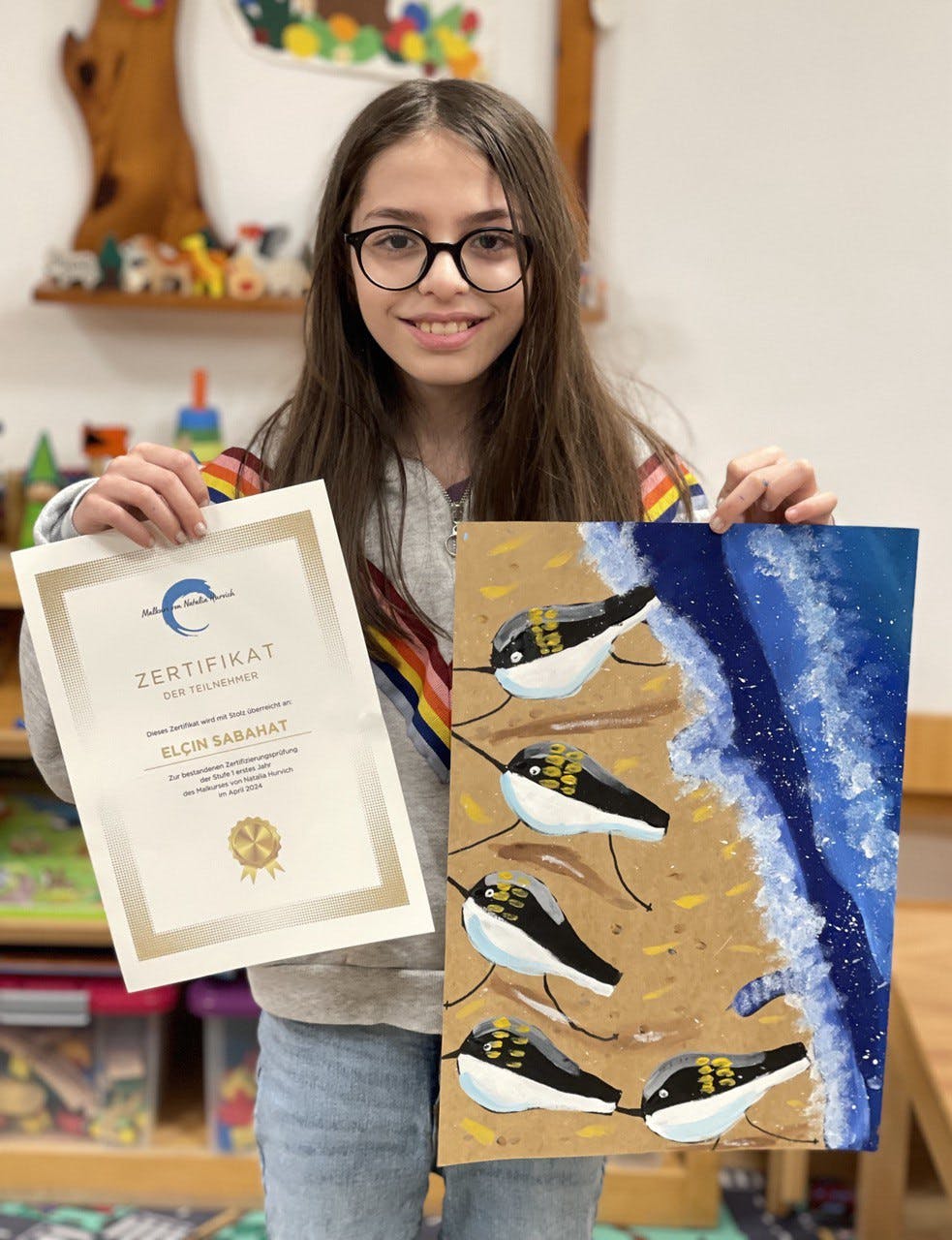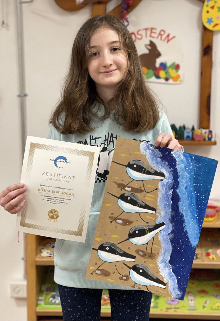 Im April haben die Kinder im Alter von 8-12 Jahren die Testarbeit bestanden und das erste Zertifikat des Malkurses von Natalia Hurvich erhalten.