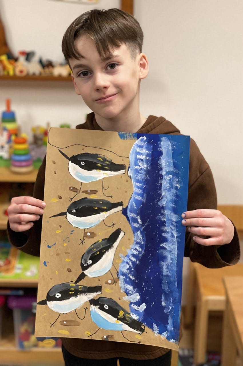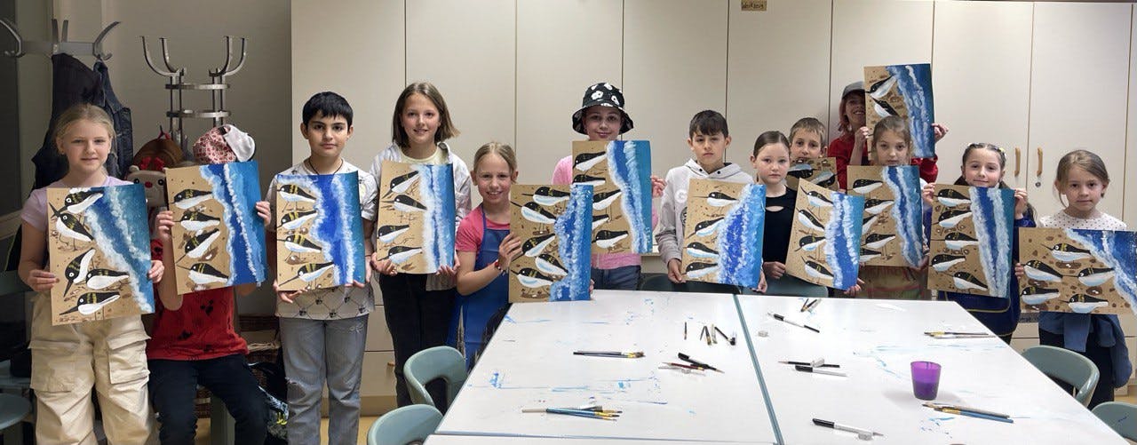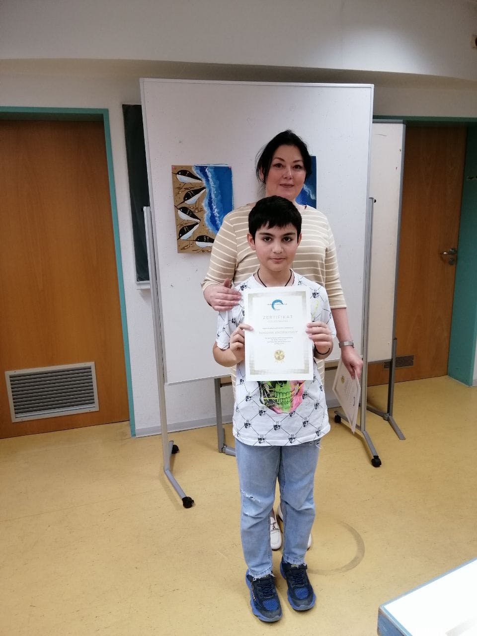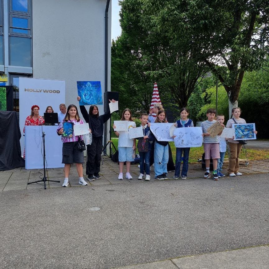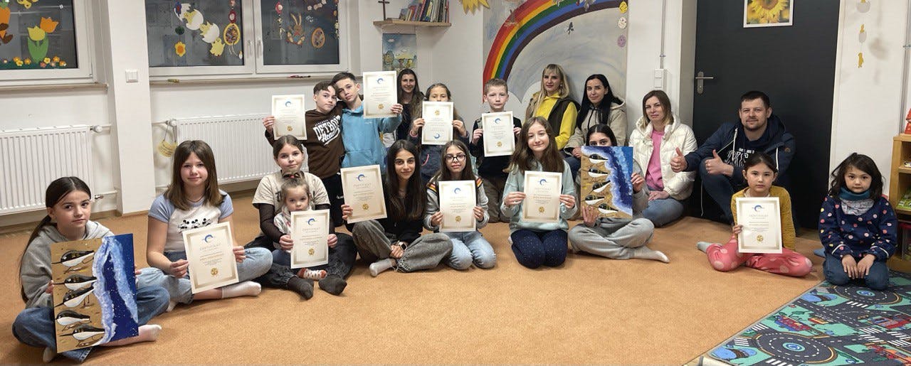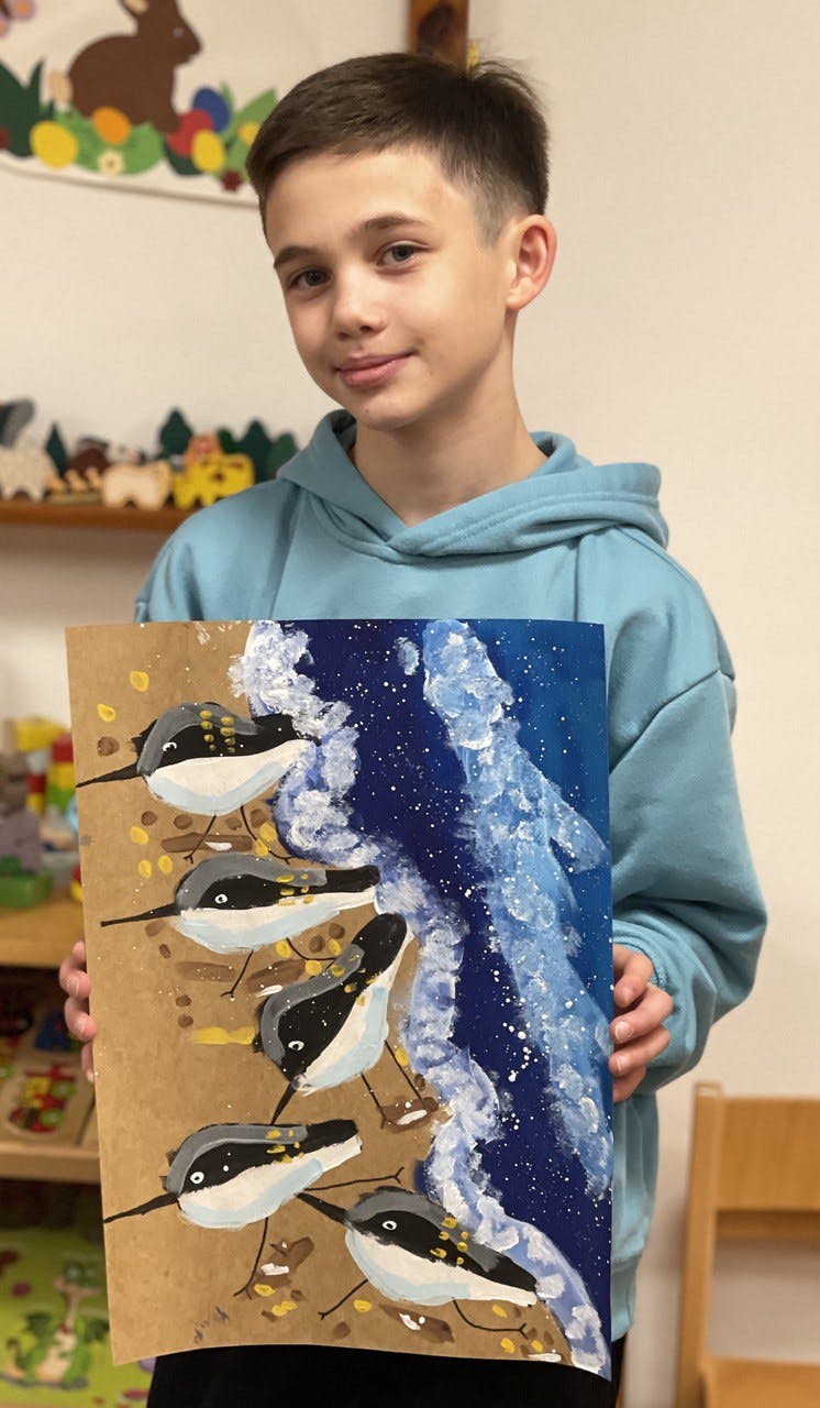 Im April haben die Kinder im Alter von 8-12 Jahren die Testarbeit bestanden und das erste Zertifikat des Malkurses von Natalia Hurvich erhalten.