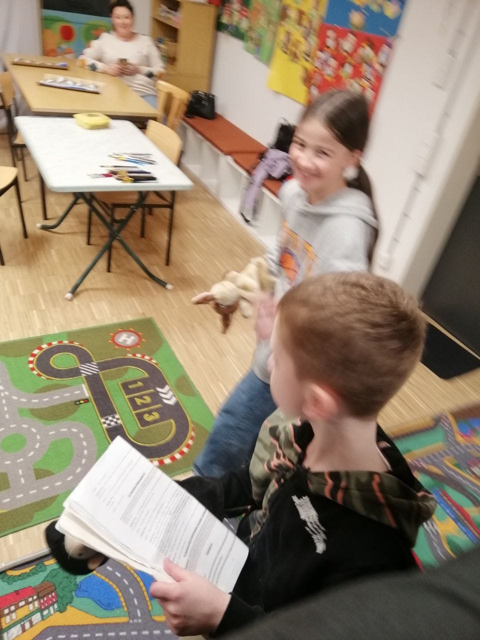 Die Kinder proben eine neue Aufführung - "Der Wolf ist zurück".