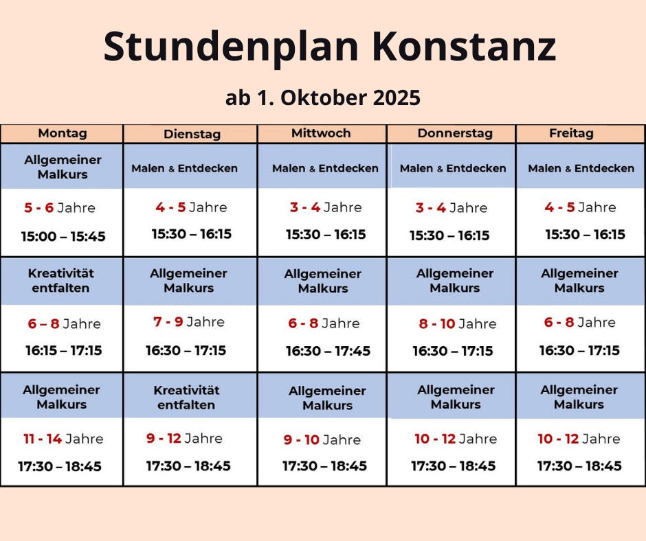 Stundenplan ab 1. Oktober 2025