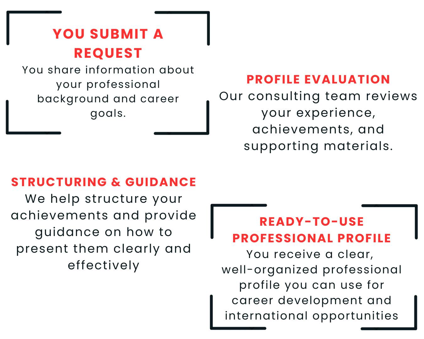 ✔️ We help clients prepare professional materials that can be used for career development and international opportunities.